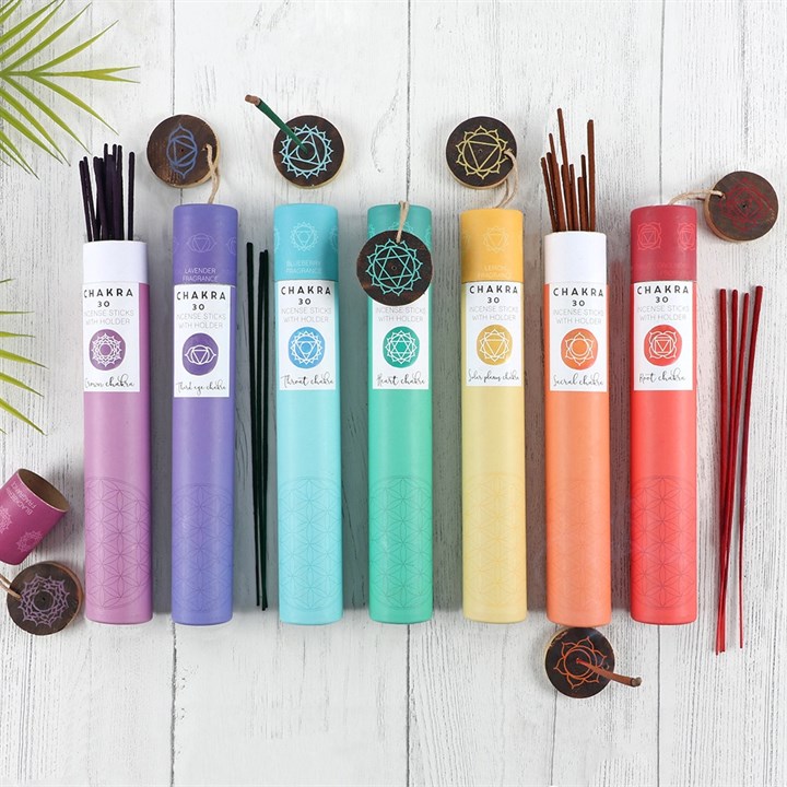 Deze prachtig verpakte chakra wierookstokjes zijn verkrijgbaar in zeven varianten, elk afgestemd op één van de zeven chakra’s. Elke geur ondersteunt de energetische werking van het bijbehorende chakra en helpt je om balans, rust en helderheid te ervaren tijdens meditatie, yoga of gewoon in je dagelijkse ritueel.